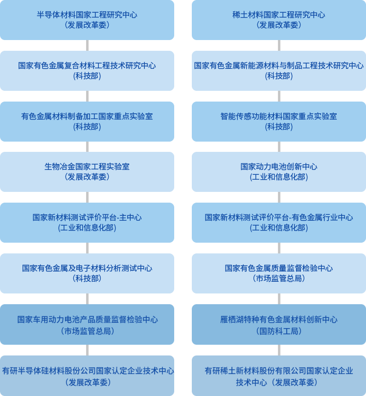 有研集團(tuán)是國(guó)家有色金屬行業(yè)技術(shù)開(kāi)發(fā)基地、國(guó)家“大眾創(chuàng)業(yè)、萬(wàn)眾創(chuàng)新”示范基地、國(guó)家級(jí)國(guó)際聯(lián)合研究中心、國(guó)家引才引智示范基地,擁有國(guó)家工程研究中心、國(guó)家工程技術(shù)研究中心、國(guó)家重點(diǎn)實(shí)驗(yàn)室、國(guó)家工程實(shí)驗(yàn)室、國(guó)家制造業(yè)創(chuàng)新中心、國(guó)家分析檢測(cè)中心、國(guó)家認(rèn)定企業(yè)技術(shù)中心等10余個(gè)國(guó)家科技創(chuàng)新平臺(tái)。