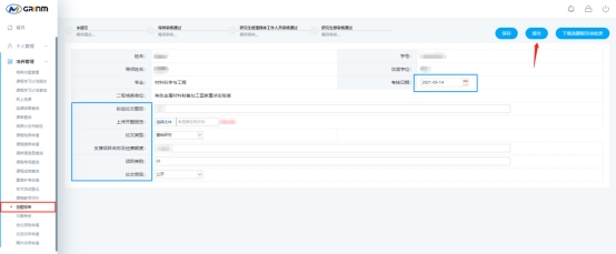 (4)研究生答辯通過(guò)后,研究生應(yīng)登錄管理信息系統(tǒng),在“培養(yǎng)管理”→“選題報(bào)告”中進(jìn)行選題申請(qǐng),上傳最終版選題報(bào)告并填報(bào)相關(guān)信息且提交后,經(jīng)由導(dǎo)師線上審核,由二級(jí)培養(yǎng)單位研究生管理人員維護(hù)相關(guān)信息并上傳《選題報(bào)告審核表》掃描件。