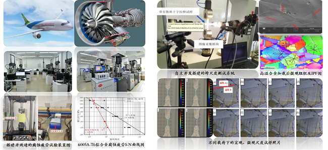 值得驕傲的是在航天航空領(lǐng)域,我們通過創(chuàng)新測試技術(shù)為國產(chǎn)大飛機翱翔藍(lán)天保駕護航。圍繞航空發(fā)動機葉片用高溫合金,開發(fā)16項測試評價方法,形成3項國家行業(yè)標(biāo)準(zhǔn),研制鎳基高溫合金全元素測定方法和5類標(biāo)準(zhǔn)物質(zhì),極大補充完善了現(xiàn)有高溫合金測試評價體系。自主研制的腐蝕疲勞試驗裝置,為大飛機用鋁合金結(jié)構(gòu)材料的壽命評估提供了科學(xué)有效的研究手段;跨尺度評價系統(tǒng),實現(xiàn)了從微米級到厘米級的材料組織和性能的實時動態(tài)測量,為高溫合金變形、斷裂、失效分析提供了全新的研究手段,填補了國內(nèi)在跨尺度評價相關(guān)技術(shù)領(lǐng)域的空白。