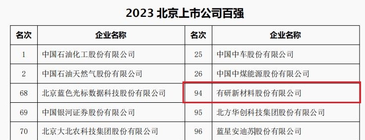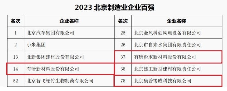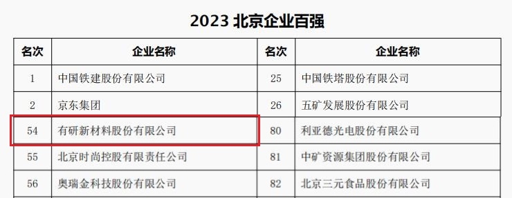 近日,北京企業(yè)聯(lián)合會(huì)、北京市企業(yè)家協(xié)會(huì)共同發(fā)布“2023北京企業(yè)百?gòu)?qiáng)”榜單。中國(guó)有研所屬公司有研新材、有研粉材、康普錫威分別榮登北京企業(yè)百?gòu)?qiáng)、北京制造業(yè)企業(yè)百?gòu)?qiáng)、北京上市公司百?gòu)?qiáng)、北京專精特新企業(yè)百?gòu)?qiáng)四大榜單。