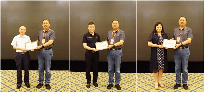 高煥芝代表中國有色金屬學(xué)會講話,她充分肯定了第八屆材料科學(xué)與工程學(xué)術(shù)委員會付出的努力和取得的成績,宣讀了關(guān)于材料科學(xué)與工程學(xué)委會換屆請示的復(fù)函。會上選舉產(chǎn)生了新一屆材料科學(xué)與工程學(xué)術(shù)委員會主任委員、副主任委員、秘書長、副秘書長、委員,成立了第九屆材料科學(xué)與工程學(xué)術(shù)委員會。熊柏青當(dāng)選第九屆材料科學(xué)與工程學(xué)術(shù)委員會主任委員,向第九屆副主任委員頒發(fā)聘書并合影。