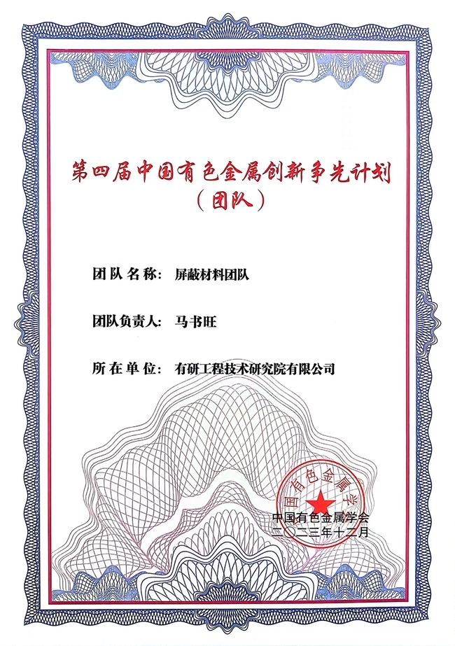 近日,有研工研院屏蔽材料團(tuán)隊(duì)榮獲“第四屆中國有色金屬創(chuàng)新爭先計(jì)劃團(tuán)隊(duì)”。