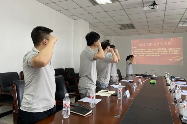 培訓內(nèi)容涉及市場發(fā)展、技術(shù)研發(fā)、生產(chǎn)制備、質(zhì)量管理等多個板塊,由公司部分部門領(lǐng)導及核心骨干人員擔當授課講師,全面增強了新員工對業(yè)務(wù)知識的了解。綜合辦公室經(jīng)理張品為新入職員工講授了保密知識,開展廉潔文化教育,并組織新員工進行了廉潔從業(yè)宣誓。