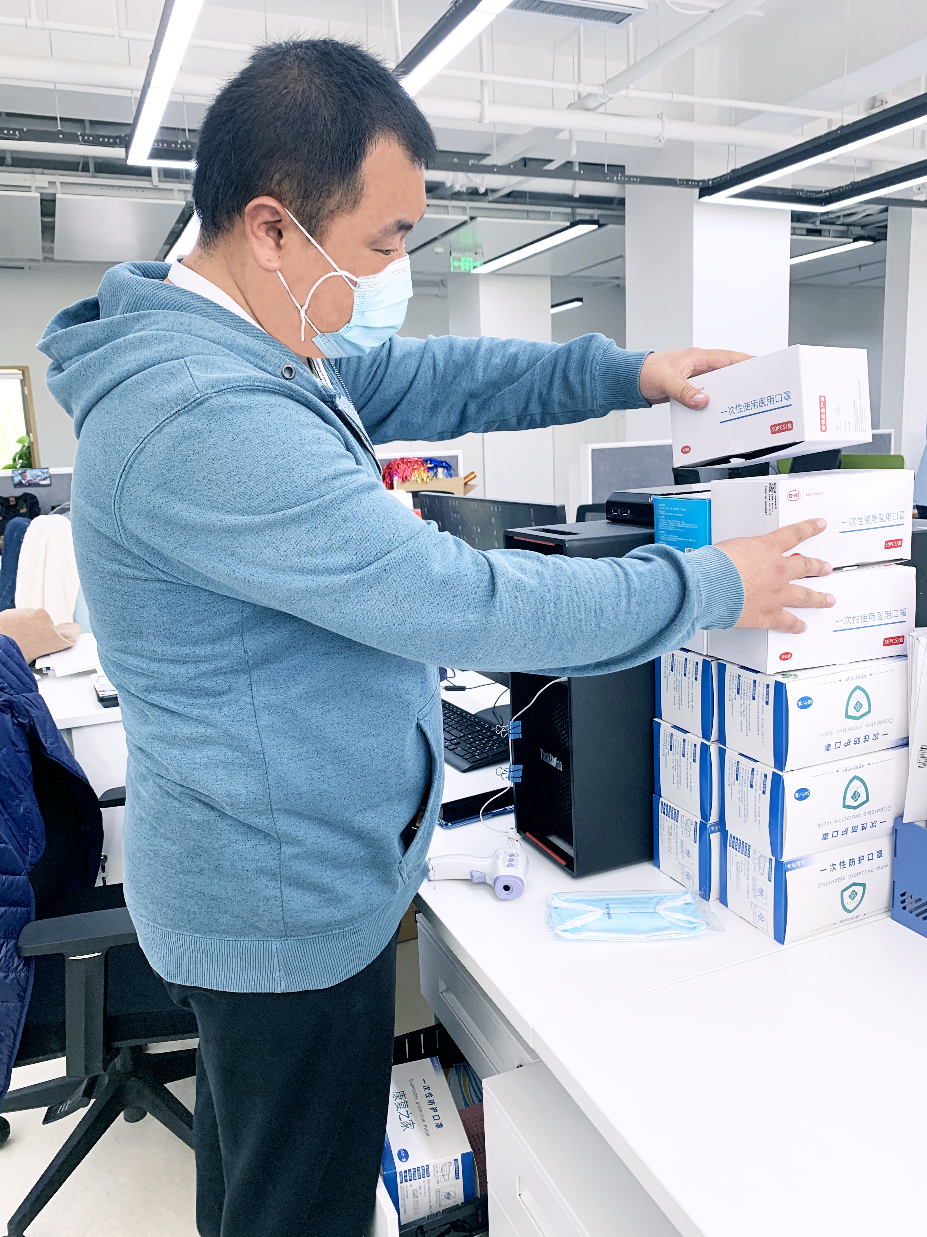 作為采購(gòu)專員,解鵬從疫情最初就開始行動(dòng)了。春節(jié)前,他積極籌措防護(hù)口罩400余只,保障了全體在京員工的返鄉(xiāng)安全。春節(jié)后,他主動(dòng)了解公司防疫物資儲(chǔ)備,聯(lián)系供應(yīng)商洽談價(jià)格和運(yùn)送,共為公司采購(gòu)醫(yī)用口罩4800支,N95型口罩200支,10kg裝84消毒液30桶,5L裝無水乙醇50桶,噴壺270個(gè),塑料桶50個(gè),垃圾袋23捆,抽紙15提,膠帶及雙面膠48卷,方便面、牛奶、面包、火腿腸和蘋果等居家食品125箱。