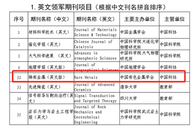 同時,有科出版旗下《稀有金屬(英文版)》《稀土學報(英文)》此次分獲“英文領(lǐng)軍期刊”、“英文梯隊期刊”項目支持;《稀有金屬》《中國稀土學報》均獲“中文梯隊期刊”項目支持;有科出版與中國航天科技創(chuàng)新研究院合作創(chuàng)辦的《超智能(英文)》、與北京納米能源與系統(tǒng)研究所合作創(chuàng)辦的《智能系統(tǒng)(英文)》均獲“高起點新刊”項目支持。