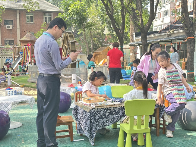 近日,有研幼兒園承擔(dān)了海淀區(qū)第19教研聯(lián)盟現(xiàn)場(chǎng)教研,開展“落實(shí)《評(píng)估指南》的自主游戲?qū)嵺`專題研修”活動(dòng)?,F(xiàn)場(chǎng)教研以“一日生活中促進(jìn)幼兒自主性發(fā)展的研究——自主游戲的觀察與分析”為主題,通過現(xiàn)場(chǎng)觀摩和研討活動(dòng),進(jìn)一步提高教師觀察與分析幼兒游戲行為的專業(yè)能力。海淀區(qū)教師進(jìn)修學(xué)校學(xué)前教育研修室教研員田彭彭受邀擔(dān)任活動(dòng)指導(dǎo)專家,來自16所幼兒園近40名教師參與此次活動(dòng)。