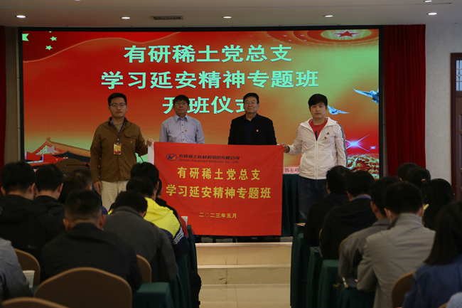 開班儀式上,延安市委黨校原副校長韓東峰介紹了延安的歷史背景、地域資源和發(fā)展現(xiàn)狀。有研稀土黨總支書記、總經(jīng)理劉榮輝做開班動員講話。他強(qiáng)調(diào),全黨正在開展學(xué)習(xí)貫徹習(xí)近平新時代中國特色社會主義思想主題教育,我們要堅定正確政治方向,深入學(xué)習(xí)貫徹習(xí)近平總書記關(guān)于稀土產(chǎn)業(yè)發(fā)展的重要指示精神,進(jìn)一步把握新時代高質(zhì)量發(fā)展的實踐要求,努力在延安精神中汲取奮進(jìn)之力,為加快打造稀土原創(chuàng)技術(shù)策源地、建設(shè)稀土材料創(chuàng)新高地、引領(lǐng)稀土行業(yè)科技發(fā)展貢獻(xiàn)力量。