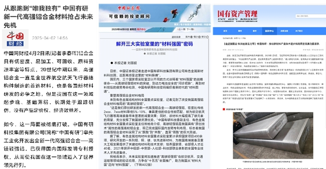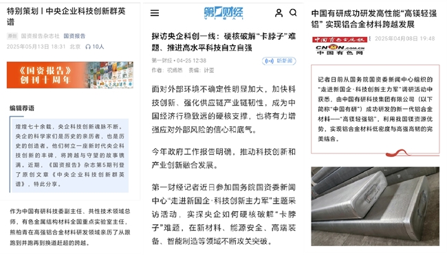 7月20日,《人民日報》頭版頭條刊發(fā)年中經(jīng)濟觀察,報道了中國有研科技成果轉化最新進展。近期,新華社、《科技日報》、中國網(wǎng)財經(jīng)、國資小新、《中國證券報》等多家主流媒體,持續(xù)關注報道中國有研科技創(chuàng)新的重要進展,其中,中國有研“高鎂輕強鋁”的誕生之路持續(xù)受到社會廣泛關注。