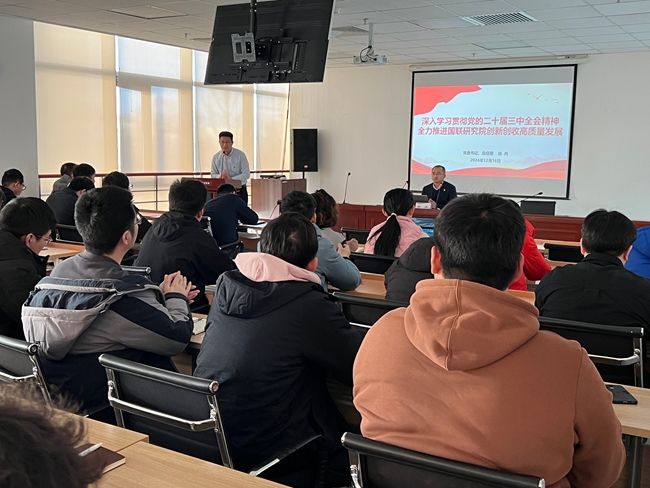 12月16日,國聯(lián)研究院組織開展青年思政教育暨形勢輔導(dǎo)報(bào)告,公司黨委書記、總經(jīng)理徐冉以《深入學(xué)習(xí)貫徹黨的二十屆三中全會(huì)精神 全力推進(jìn)國聯(lián)研究院創(chuàng)新創(chuàng)收高質(zhì)量發(fā)展》為題專題授課。國聯(lián)研究院團(tuán)支部書記蘇子龍主持會(huì)議,公司團(tuán)員青年、在讀研究生參加會(huì)議。