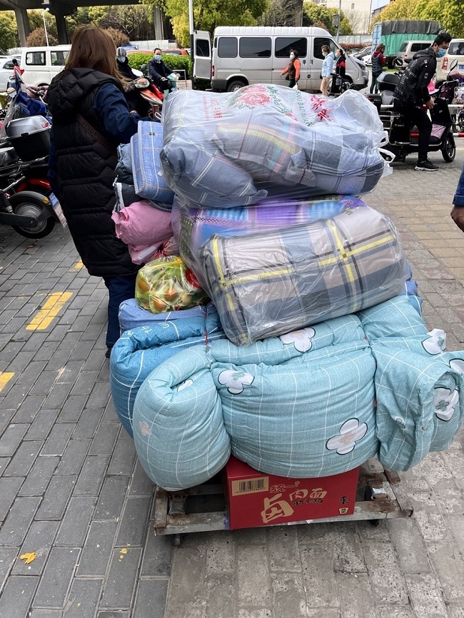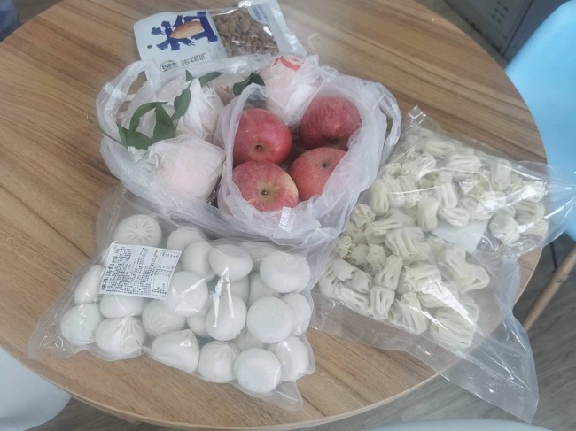 為滿足駐守員工的生活需求,上海團(tuán)干部季悅主動擔(dān)當(dāng),為駐守員工加急采購被褥、床單、方便食品及果蔬等物資,并發(fā)放到員工手中,確保員工生活保障。團(tuán)干部積極尋找途徑采購新冠抗原試劑,保障封控期間及解封后的員工檢測儲備需求。