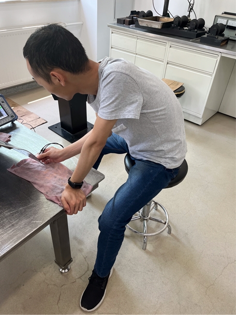 無損檢測部青年正在進(jìn)行超聲無損檢測工作。