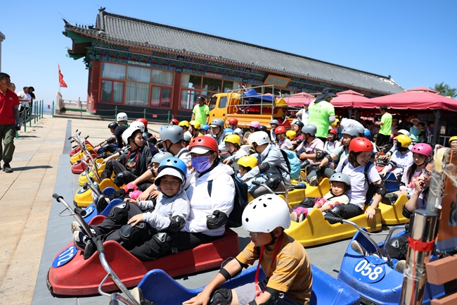 最先開展的登山活動(dòng)非??简?yàn)體力和意志。孩子們或三兩成隊(duì),腳步輕快地競(jìng)速上山,如靈動(dòng)的小鹿穿梭于山林間;或結(jié)伴而行,走走停停,歡聲笑語隨山風(fēng)飄散在濃密的綠葉之上。下行的山地滑車項(xiàng)目最受孩子們喜愛。在家長的陪伴下,孩子們?nèi)卑踩b備坐上滑車,沿著蜿蜒的軌道穿梭于山林之間,感受疾馳風(fēng)速與自然美景,山林間回蕩著孩子們驚呼和歡笑。