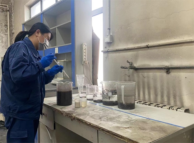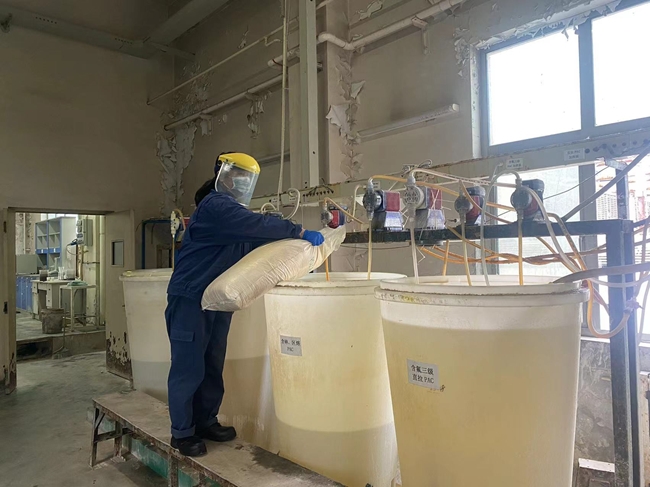 技術(shù)人員:污水的變化多種多樣,即使是同一個(gè)產(chǎn)線排放的污水,每天的情況都是不同的,這需要技術(shù)人員對(duì)收集到的污水進(jìn)行初期分析,調(diào)試出配比合適的藥劑,再對(duì)污水進(jìn)行批量處理。通過多年的實(shí)驗(yàn)積累,她能夠做到看水的顏色和狀態(tài)分析出所需要添加藥劑的品種和藥量,大大提高了水處理效率。