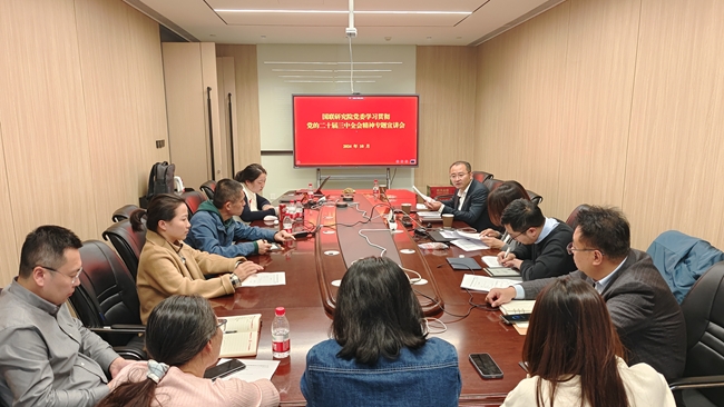 10月26日,國聯(lián)研究院組織黨的二十屆三中全會精神專題宣講。國聯(lián)研究院黨委書記、總經(jīng)理徐冉主持會議,國聯(lián)研究院領(lǐng)導(dǎo)班子成員參加宣講,國聯(lián)研究院各基層黨支部書記、副書記,各部門黨員骨干參加會議。