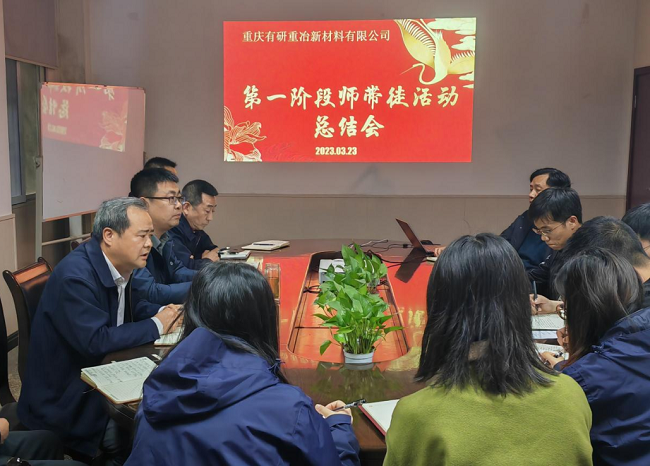 3月23日,有研重冶召開第一階段“師帶徒”活動(dòng)總結(jié)會(huì)。有研粉材黨委委員、副總經(jīng)理,有研重冶黨支部書記、總經(jīng)理李占榮出席會(huì)議,會(huì)議由黨支部副書記、副總經(jīng)理高翔主持。