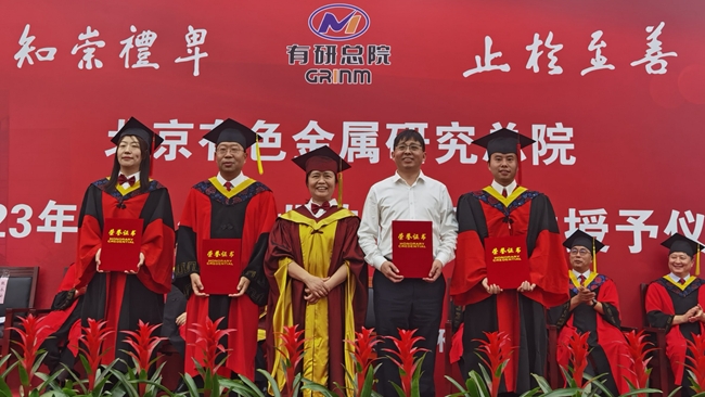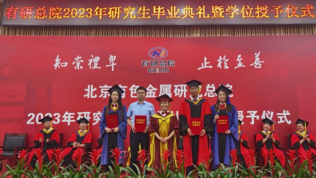 6月29日,北京有色金屬研究總院2023年研究生畢業(yè)典禮暨學(xué)位授予儀式在懷柔科創(chuàng)園舉行。有研稀土(稀土國家工程研究中心)導(dǎo)師、畢業(yè)生及在讀研究生代表參加了畢業(yè)典禮。王承二等5名同學(xué)獲得博士學(xué)位,王藝璇等6名同學(xué)獲得碩士學(xué)位。