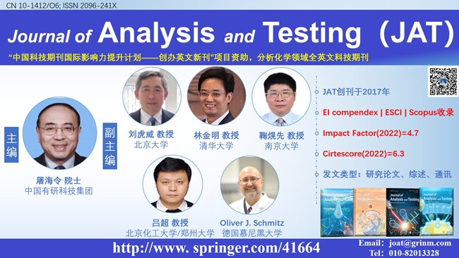 Journal of Analysis and Testing 2022年度影響因子4.7,首獲影響因子,在JCR分析化學(xué)學(xué)科域(CHEMISTRY, ANALYTICAL)中排名為17/72,位于Q1區(qū)。