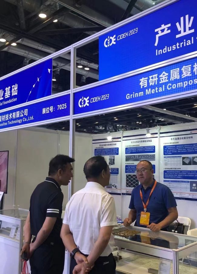 本屆大會,有研復(fù)材采用原創(chuàng)技術(shù)為軍工電子行業(yè)提供散熱解決方案,在高導(dǎo)熱金屬基功能復(fù)合材料領(lǐng)域取得重要原創(chuàng)性突破,圍繞國防軍工電子及高端民用電子散熱需求開發(fā)了高導(dǎo)熱高強度石墨鋁復(fù)合材料,突破了此類材料的性能極限,材料制備技術(shù)屬于國內(nèi)首創(chuàng)。開發(fā)的石墨鋁均熱板、面板等產(chǎn)品在國產(chǎn)重點裝備上批量應(yīng)用,形成良好的技術(shù)引領(lǐng)和產(chǎn)業(yè)推動作用。有研復(fù)材創(chuàng)新采用自主開發(fā)粉末冶金技術(shù),研制出綜合性能優(yōu)異的電子封裝用硅鋁復(fù)合材料,主要性能超越進口材料,達到國際領(lǐng)先水平。牽頭制定了硅鋁國家軍用標準,有力推動了國產(chǎn)硅鋁材料批量應(yīng)用,成功實現(xiàn)進口替代,為武器裝備關(guān)鍵材料的自主可控做出貢獻。同時,依托國家有色金屬復(fù)合材料工程技術(shù)研究中心近30年的鋁合金粉末冶金技術(shù)沉淀,開發(fā)并通過各類臺架考核的某型飛機鋁基復(fù)合材料鍛件,產(chǎn)品疲勞壽命優(yōu)于國外同類產(chǎn)品,成功實現(xiàn)進口替代。展會現(xiàn)場,有研復(fù)材為參觀客戶提供了全面而專業(yè)的解答與服務(wù)。有研復(fù)材展臺的“高導(dǎo)熱石墨鋁復(fù)合材料”、“高導(dǎo)熱金剛石鋁復(fù)合材料”、“硅鋁復(fù)合材料”、“梯度復(fù)合材料”、“高強高韌鋁基復(fù)合材料”、“高精密高模量鋁基復(fù)合材料”等產(chǎn)品備受關(guān)注。