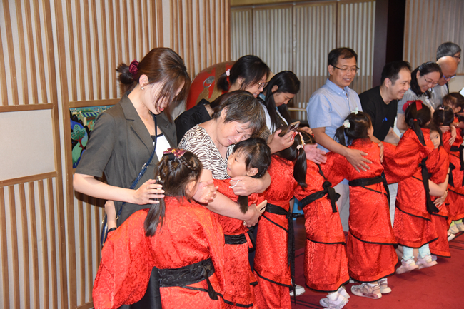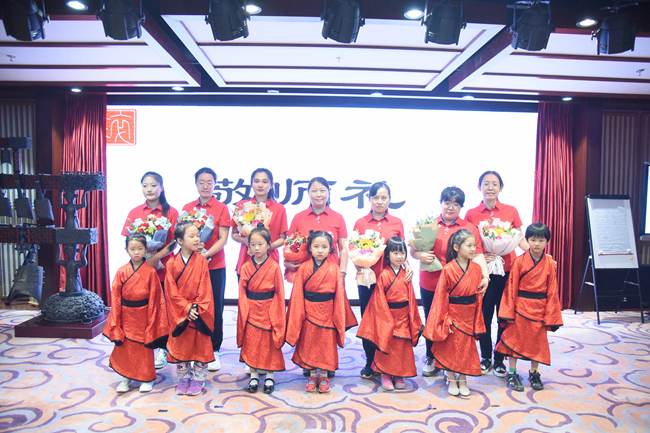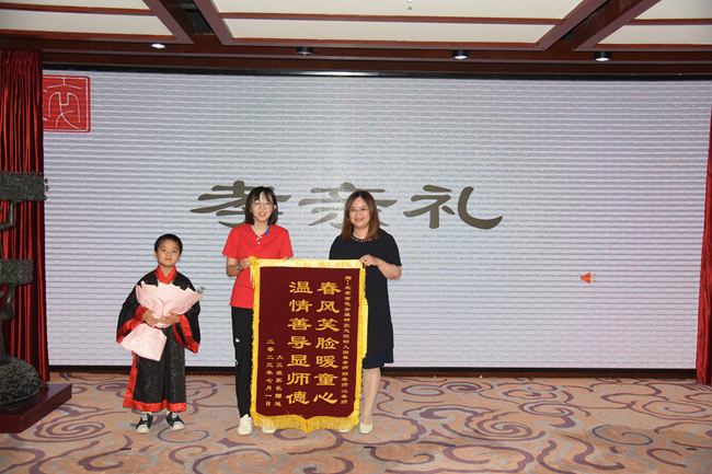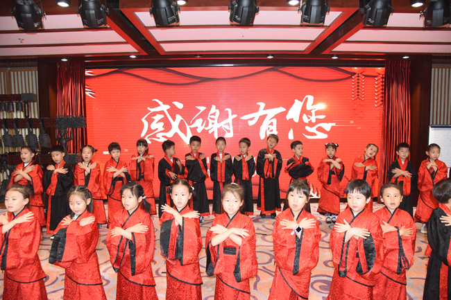 孩子們端身正意,肅整衣冠,向父母行拱拜禮。父母是孩子的第一任啟蒙老師,孩子們向家長(zhǎng)行感恩禮,感謝父母對(duì)自己無私的關(guān)懷和愛護(hù)。