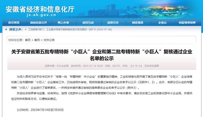近日,根據(jù)安徽省經(jīng)濟(jì)和信息化廳發(fā)布的《關(guān)于安徽省第五批專精特新“小巨人”企業(yè)和第二批專精特新“小巨人”復(fù)核通過企業(yè)名單的公示》《第五批專精特新“小巨人”企業(yè)公示名單》,有研粉材所屬公司有研合肥入選工信部第五批專精特新“小巨人”企業(yè)。