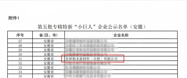 有研合肥本次入選工信部專精特新“小巨人”企業(yè),是繼北京康普錫威科技有限公司(第一批)、重慶有研重冶新材料有限公司(第四批)后,第三家取得該稱號(hào)的有研粉材所屬公司,是對(duì)公司科研技術(shù)、創(chuàng)新能力、發(fā)展前景、產(chǎn)品質(zhì)量、行業(yè)地位等綜合實(shí)力的充分認(rèn)可,有助于提升公司的行業(yè)影響力和品牌形象,進(jìn)一步增強(qiáng)公司的市場(chǎng)競(jìng)爭(zhēng)力,發(fā)揮公司在行業(yè)細(xì)分領(lǐng)域內(nèi)優(yōu)勢(shì),對(duì)未來公司繼續(xù)專注創(chuàng)新與質(zhì)量提升,持續(xù)進(jìn)行新產(chǎn)品開發(fā)和技術(shù)迭代,不斷提高核心競(jìng)爭(zhēng)力,打造世界一流金屬粉體材料供應(yīng)商產(chǎn)生積極影響。