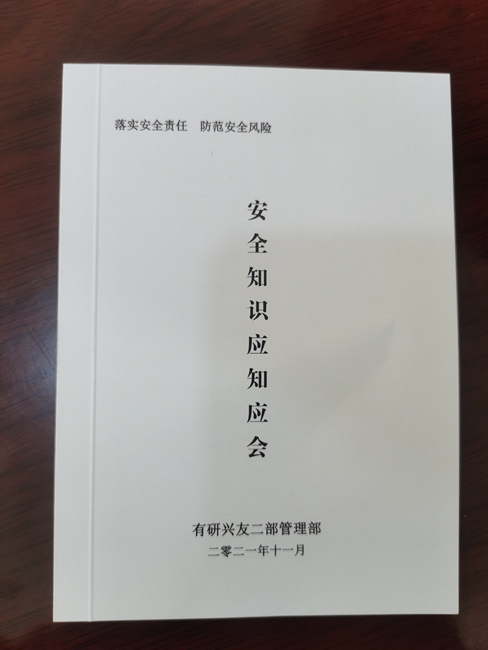 本次活動的開展以新消法聚焦的重點(diǎn)問題為切入點(diǎn),針對火災(zāi)預(yù)防、消防組織、滅火救援等關(guān)鍵環(huán)節(jié)進(jìn)行了演練。二部園區(qū)安全員按照消防預(yù)案對企業(yè)消防安全責(zé)任落實(shí)和如何做好消防安全管理工作進(jìn)行了宣貫,同時(shí)為便于職工進(jìn)一步學(xué)習(xí)掌握相關(guān)消防知識、鞏固學(xué)習(xí)成果,二部園區(qū)管理部專門制作發(fā)放了《消防安全工作應(yīng)知應(yīng)會》“口袋書”。