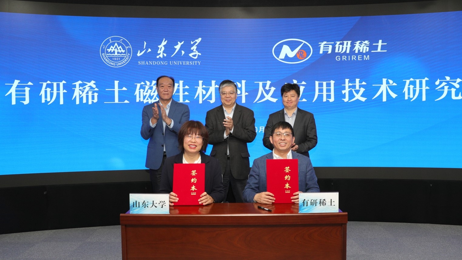 10月17日,有研稀土與山東大學(xué)舉行共建磁性材料及應(yīng)用技術(shù)研究院簽約儀式。山東大學(xué)副校長(zhǎng)、山東大學(xué)(威海)校長(zhǎng)劉建亞,山東大學(xué)(威海)副校長(zhǎng)趙玉璞、夏利東,山東大學(xué)機(jī)電與信息工程學(xué)院常務(wù)副院長(zhǎng)王麗,威海市科學(xué)技術(shù)局黨組書記、局長(zhǎng)譚遠(yuǎn)國(guó);有研新材黨委副書記、總經(jīng)理,有研稀土董事長(zhǎng)于敦波,有研稀土總經(jīng)理劉榮輝等出席儀式。