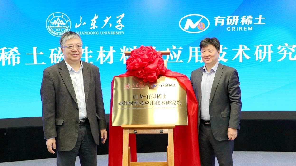 于敦波和劉建亞共同為研究院揭牌,劉榮輝、王麗分別代表雙方簽署了磁性材料及應(yīng)用技術(shù)研究院共建協(xié)議。于敦波在致辭中表示,與山東大學(xué)共建研究院是有研稀土做大做強(qiáng)稀土新材料產(chǎn)業(yè)、推動(dòng)構(gòu)建政產(chǎn)學(xué)研深度融合優(yōu)良生態(tài)的關(guān)鍵舉措,對(duì)吸納高層次人才、推動(dòng)行業(yè)關(guān)鍵技術(shù)突破、加快科研成果轉(zhuǎn)化、實(shí)現(xiàn)互促式發(fā)展具有重要意義。他希望以共建研究院為契機(jī),進(jìn)一步加強(qiáng)與山東大學(xué)以及威海市相關(guān)部門、企業(yè)的合作,以產(chǎn)業(yè)鏈布局創(chuàng)新鏈,加快推進(jìn)技術(shù)創(chuàng)新與產(chǎn)學(xué)研合作,為落實(shí)國(guó)家戰(zhàn)略布局和區(qū)域經(jīng)濟(jì)社會(huì)發(fā)展作出央企貢獻(xiàn)。