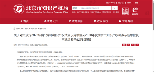 近日,北京市知識產(chǎn)權(quán)局公示了2023年北京市知識產(chǎn)權(quán)試點(diǎn)示范單位名單。有研資環(huán)院成功入選2023年度“北京市知識產(chǎn)權(quán)示范單位”。