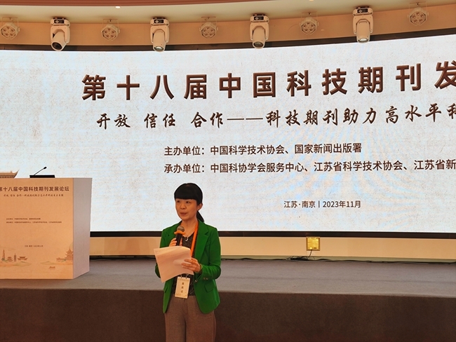 近日,第十八屆中國科技期刊發(fā)展論壇在南京開幕。本屆論壇由中國科學技術協(xié)會、國家新聞出版署主辦,中國科協(xié)學會服務中心、江蘇省新聞出版局、江蘇省科學技術協(xié)會承辦,主題為“開放 信任 合作——科技期刊助力高水平科技自立自強”。中宣部副部長張建春,中國科學技術協(xié)會黨組副書記、專職副主席、書記處書記束為,江蘇省委常委、宣傳部部長張愛軍出席并講話,有科出版董事長、總經(jīng)理錢九紅一行受邀出席。