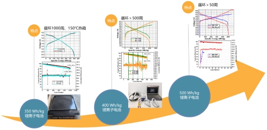 400 Wh/kg系列電池技術。少數(shù)報道的400 Wh/kg鋰電池技術,一般采用超高鎳三元正極材料、超高容量硅負極材料,不僅成本高,而且使用壽命短,嚴重限制其實際應用。國家動力電池創(chuàng)新中心采用自主開發(fā)的低成本富鋰錳基材料、超高鎳三元材料兩大技術路線,匹配低膨脹高穩(wěn)定硅基負極,結合多元復合粘結劑及多維導電網(wǎng)絡構筑技術、自主設計的高電壓功能電解液及自適應成膜技術,攻克了比容量超1000 mAh/g硅基負極的表界面穩(wěn)定性難題,實現(xiàn)電池能量密度超過402 Wh/kg、體積比能量達900 Wh/L、循環(huán)500周容量保持率大于85%,支持2C快速充放電,滿足體積小、質量輕、續(xù)航長的應用需求,在虛擬現(xiàn)實(VR)等新型電子產(chǎn)品上實現(xiàn)了驗證,拓寬了高能量密度電池的應用領域。