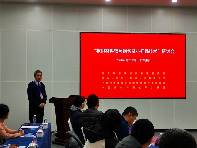 1月26日至28日,“核用材料輻照損傷及小樣品技術(shù)”研討會(huì)在廣東省惠州市召開(kāi)。本次會(huì)議由中國(guó)科學(xué)院近代物理研究所、國(guó)標(biāo)(北京)檢驗(yàn)認(rèn)證有限公司聯(lián)合主辦,中國(guó)有色金屬學(xué)會(huì)理化檢驗(yàn)學(xué)術(shù)委員會(huì)、中國(guó)新材料測(cè)試評(píng)價(jià)聯(lián)盟共同承辦。來(lái)自中國(guó)科學(xué)院近代物理研究所、中國(guó)原子能科學(xué)研究院、中國(guó)核動(dòng)力研究設(shè)計(jì)院、中國(guó)科學(xué)院金屬研究所、中廣核研究院有限公司、蘇州熱工研究院、有研工程技術(shù)研究院有限公司、國(guó)標(biāo)(北京)檢驗(yàn)認(rèn)證有限公司、上海交通大學(xué)、北京理工大學(xué)、山東大學(xué)、西南科技大學(xué)等12家單位的26名代表參加會(huì)議。