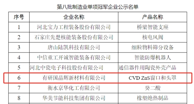 3月11日,工業(yè)和信息化部第八批制造業(yè)單項(xiàng)冠軍企業(yè)結(jié)束公示,有研國(guó)晶輝新材料有限公司榜上有名。