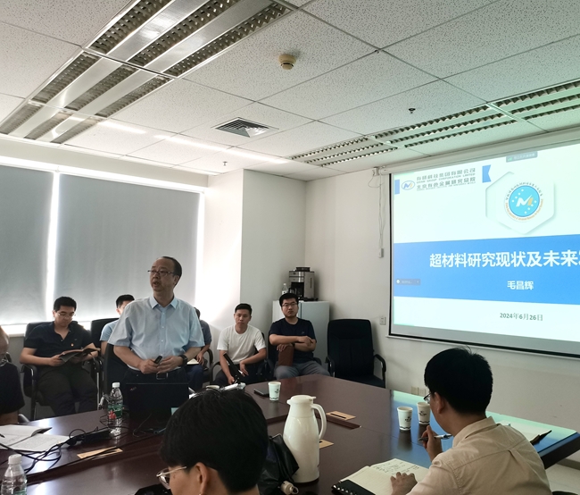 毛昌輝圍繞超材料概況、超材料物理原理、超材料經(jīng)典結(jié)構(gòu)及制備方法、國(guó)內(nèi)超材料領(lǐng)域研究概況、超材料研究領(lǐng)軍團(tuán)隊(duì)及超材料應(yīng)用展望等方面對(duì)超材料進(jìn)行了全面細(xì)致的講解,分析總結(jié)了現(xiàn)階段超材料發(fā)展存在的問題。交流環(huán)節(jié)中,與會(huì)人員就超材料在吸波、傳感、屏蔽等領(lǐng)域的科學(xué)問題及應(yīng)用前景進(jìn)行了深入研討。