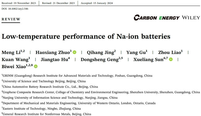 同時(shí),團(tuán)隊(duì)發(fā)表于《Carbon Energy》上題為“Low-temperature performance of Na-ion batteries”(影響因子19.5)的綜述性文章分析總結(jié)了鈉離子電池在低溫工作時(shí)所面臨的鈉離子傳輸動(dòng)力學(xué)與性能衰減的相關(guān)性,并從理論機(jī)制角度闡述了不同環(huán)境下的離子擴(kuò)散行為,分析了提升鈉離子低溫性能的實(shí)際方案,為發(fā)展特種鈉離子電池提供了有力證據(jù)。