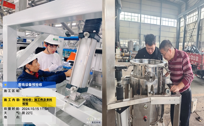 公司產(chǎn)線技術(shù)團隊,為確保產(chǎn)線布局與項目施工有序協(xié)同推進,與設(shè)備廠家、機電安裝、運輸?shù)跹b、土建施工單位開展多輪次溝通、協(xié)調(diào),派員赴設(shè)備廠家開展監(jiān)造、預(yù)驗收,與各單位溝通施工界面問題,按工序合理分配現(xiàn)場安裝任務(wù)等,確保設(shè)備進場安裝如期開展、交叉施工安全進行,為產(chǎn)線調(diào)試提供技術(shù)保證。