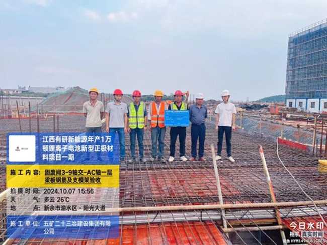 公司工程建設(shè)團隊,為保證項目建設(shè)工程按期完成各項任務(wù),克服高溫、忘記疲憊,組織施工方分區(qū)有序捆扎鋼筋、澆筑混凝土、砌體抹灰,保質(zhì)保量開展施工質(zhì)量驗收、進度驗收,9月底主體廠房如期實現(xiàn)封頂,為后續(xù)設(shè)備進場安裝提供基礎(chǔ)支撐。
