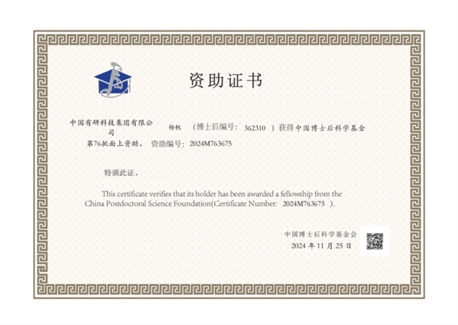 11月25日,中國(guó)博士后科學(xué)基金會(huì)公布了第76批面上資助獲資助人員名單,中國(guó)有研在站博士后楊帆(合作導(dǎo)師:黃小衛(wèi)院士)獲得資助。