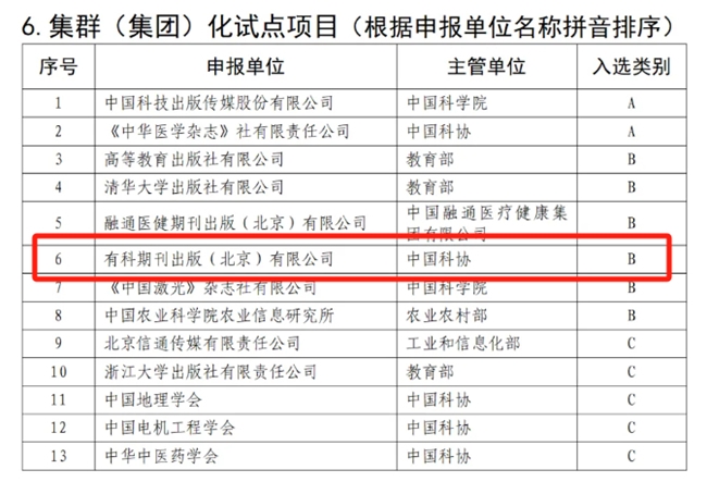 11月28日,中國科學(xué)技術(shù)協(xié)會發(fā)布《關(guān)于下達中國科技期刊卓越行動計劃二期入選項目的通知》,由有科出版組織申報的工程技術(shù)領(lǐng)域科技期刊集群(簡稱T刊集群),以優(yōu)異成績從全國30余家集群中脫穎而出,入選“中國科技期刊卓越行動計劃二期集群(集團)化試點項目”(2024-2028年)B類。
