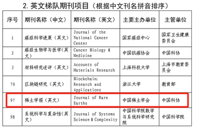 同時,有科出版旗下《稀有金屬(英文版)》《稀土學(xué)報(英文)》此次分獲“英文領(lǐng)軍期刊”、“英文梯隊期刊”項目支持;《稀有金屬》《中國稀土學(xué)報》均獲“中文梯隊期刊”項目支持;有科出版與中國航天科技創(chuàng)新研究院合作創(chuàng)辦的《超智能(英文)》、與北京納米能源與系統(tǒng)研究所合作創(chuàng)辦的《智能系統(tǒng)(英文)》均獲“高起點新刊”項目支持。
