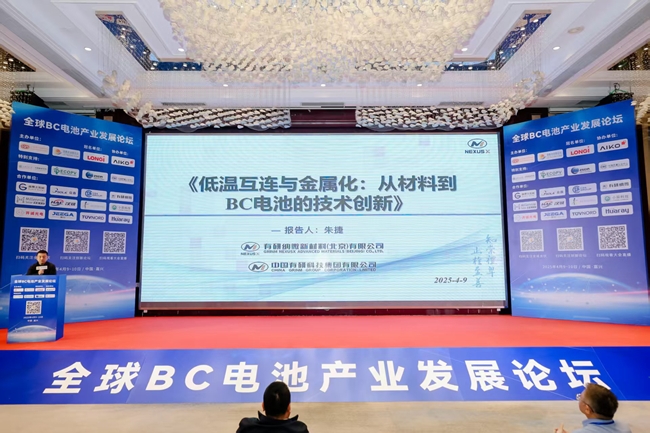 會上,有研納微新材料(北京)有限公司受邀出席并作技術(shù)報告。有研納微總經(jīng)理朱捷圍繞BC技術(shù)的發(fā)展趨勢、BC組件封裝互連材料“超細化、低溫化和高可靠”技術(shù)趨勢,以及BC電極互連材料“少銀/無銀化”技術(shù)趨勢三方面內(nèi)容,進行詳細闡述,并提出相應(yīng)解決方案。報告受到諸多行業(yè)同仁的好評,并于會后展開交流。