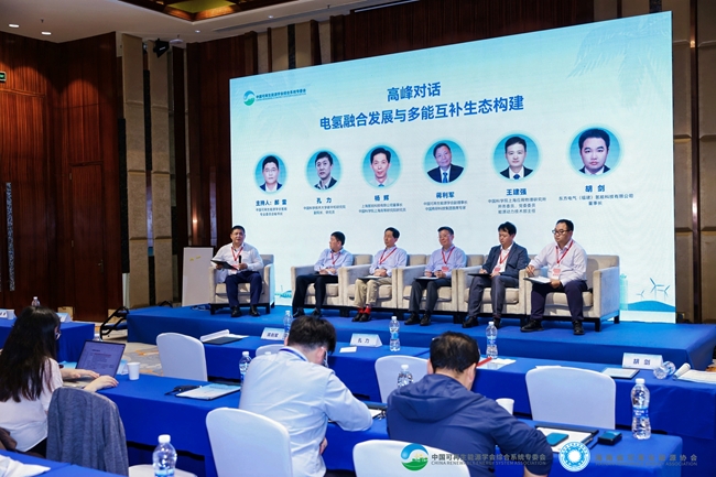 郝雷主持了分論壇的高峰對話環(huán)節(jié),中國有研蔣利軍,中國科學(xué)技術(shù)大學(xué)碳中和研究院副院長、研究員孔力,上海氫銳科技有限公司董事長、中國科學(xué)院上海高等研究院研究員楊輝,中國科學(xué)院上海應(yīng)用物理研究所所務(wù)委員、黨委委員、能源動力技術(shù)部主任王建強(qiáng),東方電氣(福建)氫能科技有限公司董事長胡劍參加對話,并就“電氫融合發(fā)展與多能互補(bǔ)生態(tài)構(gòu)建”主題展開探討。