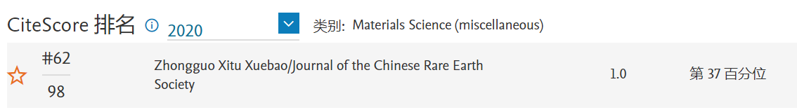 《中國稀土學(xué)報(bào)》 CiteScore 2020:1.0,位于Materials Science (miscellaneous)學(xué)科Q3區(qū)(62/98)。