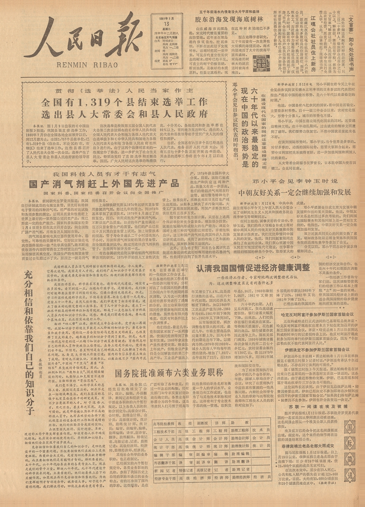 ——1981年1月13日《人民日報(bào)》第一版