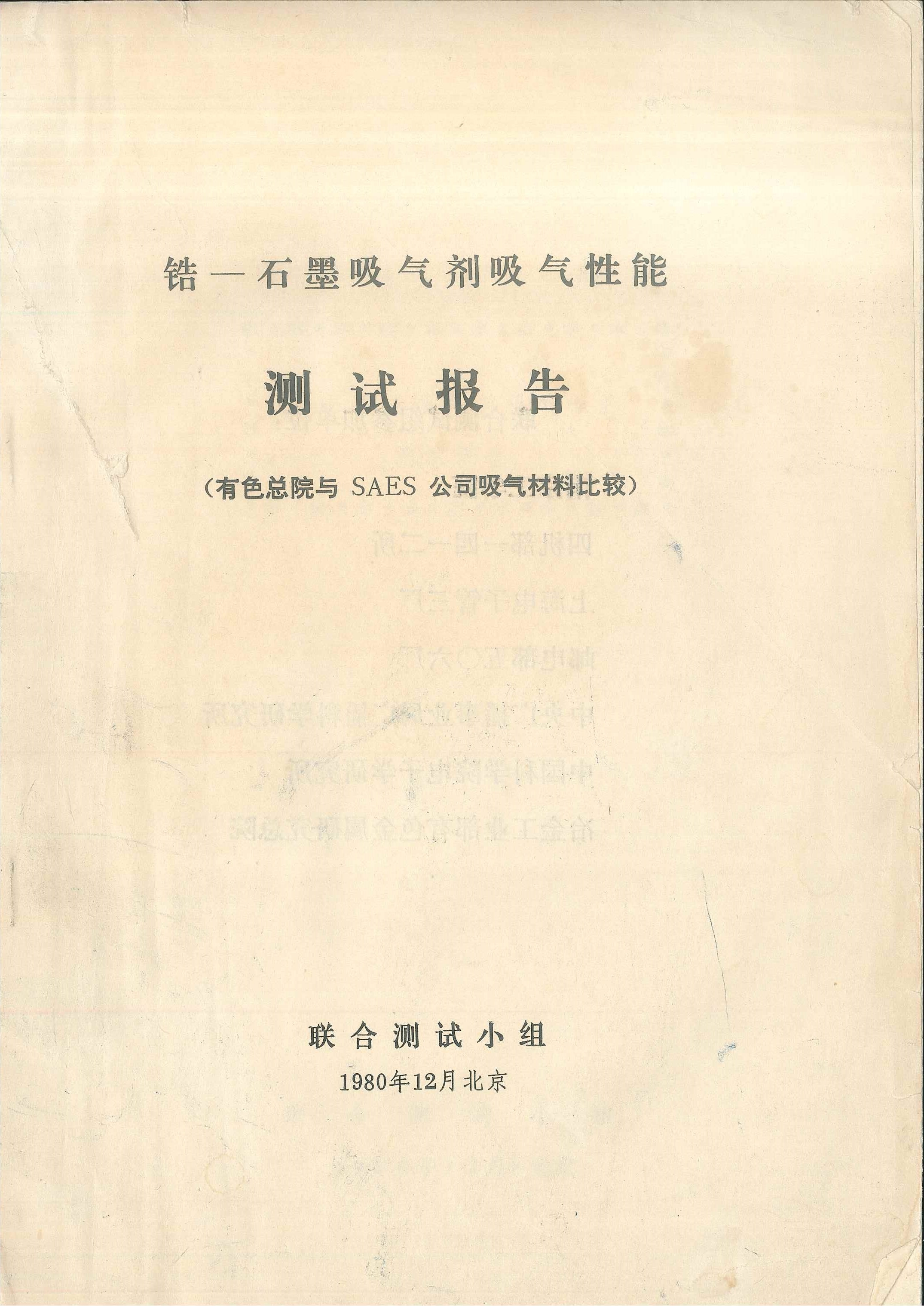 1980年12月,為了驗(yàn)證批量生產(chǎn)的吸氣劑的性能是否真正達(dá)到了國際水平,由國內(nèi)7家電真空權(quán)威單位和應(yīng)用單位的專家組組成聯(lián)合測試組。12月6日至13日,在北京有色金屬研究總院(現(xiàn)有研集團(tuán)),對研制的吸氣材料進(jìn)行了嚴(yán)格認(rèn)真的吸氣性能測試。同時,對剛從國外購進(jìn)的類似吸氣材料,在同樣的試驗(yàn)條件下進(jìn)行測試以便比較鑒定。