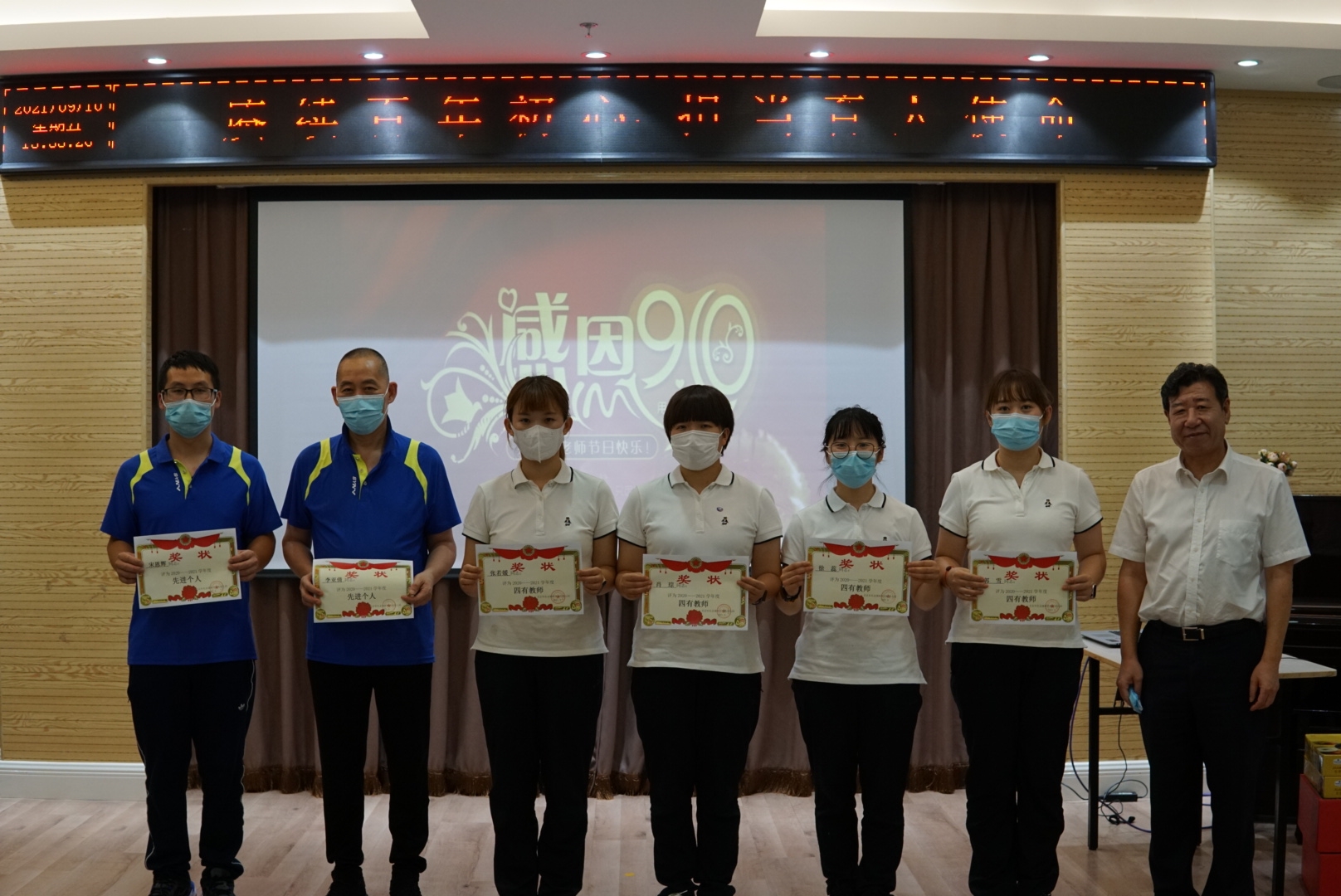 當(dāng)天,有研幼兒園舉辦主題為“賡續(xù)百年初心,擔(dān)當(dāng)育人使命”的教師節(jié)慶?;顒?dòng),活動(dòng)在張福萍園長熱情洋溢的講話中拉開序幕,全體教職工在國旗下莊嚴(yán)宣誓,承諾做到嚴(yán)格恪守幼兒教師的職業(yè)道德規(guī)范,保護(hù)幼兒的身心健康發(fā)展?;顒?dòng)表彰了2020-2021年度“有愛有家”先進(jìn)班組、“四有”教師、先進(jìn)個(gè)人、教師新秀和“風(fēng)雨同舟”等集體和個(gè)人。