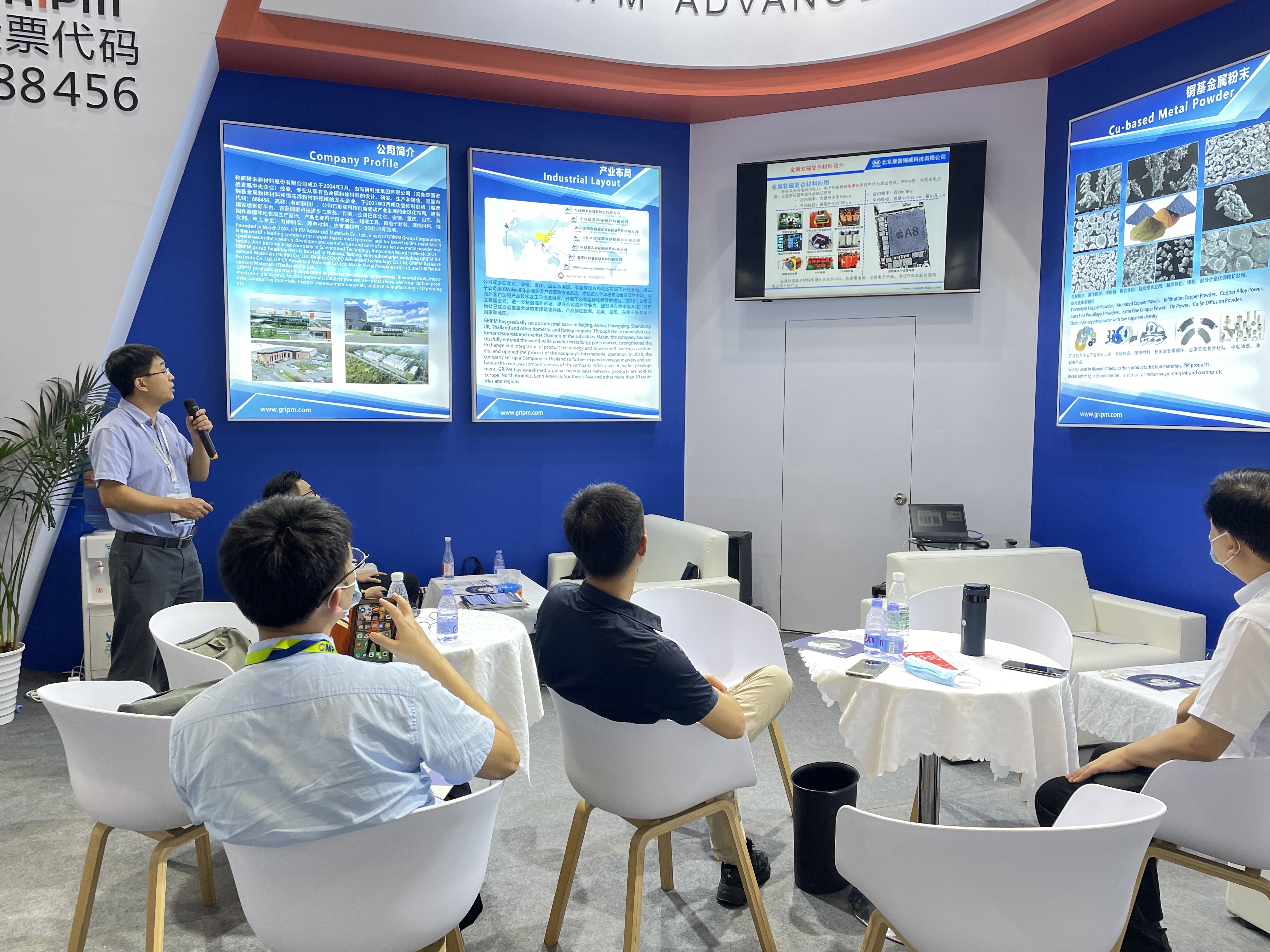 此次參展是有研粉材在上市后第一次以集團公司形象亮相專業(yè)展會。公司展出了粉末冶金用銅基金屬粉末、3D打印用金屬粉末及制品、特種粉材、錫基焊料等50余種產(chǎn)品,涉及粉末冶金零部件、金剛石工具、3D打印和微電子焊接等應(yīng)用領(lǐng)域。同時,公司石韜博士、盛艷偉博士在展臺現(xiàn)場分別作了“PM零件用銅及銅合金粉”和“金屬軟磁復(fù)合材料簡介及應(yīng)用”的主題講座,很多客戶在現(xiàn)場進行了詳細咨詢,希望通過這次機會進行深入合作。