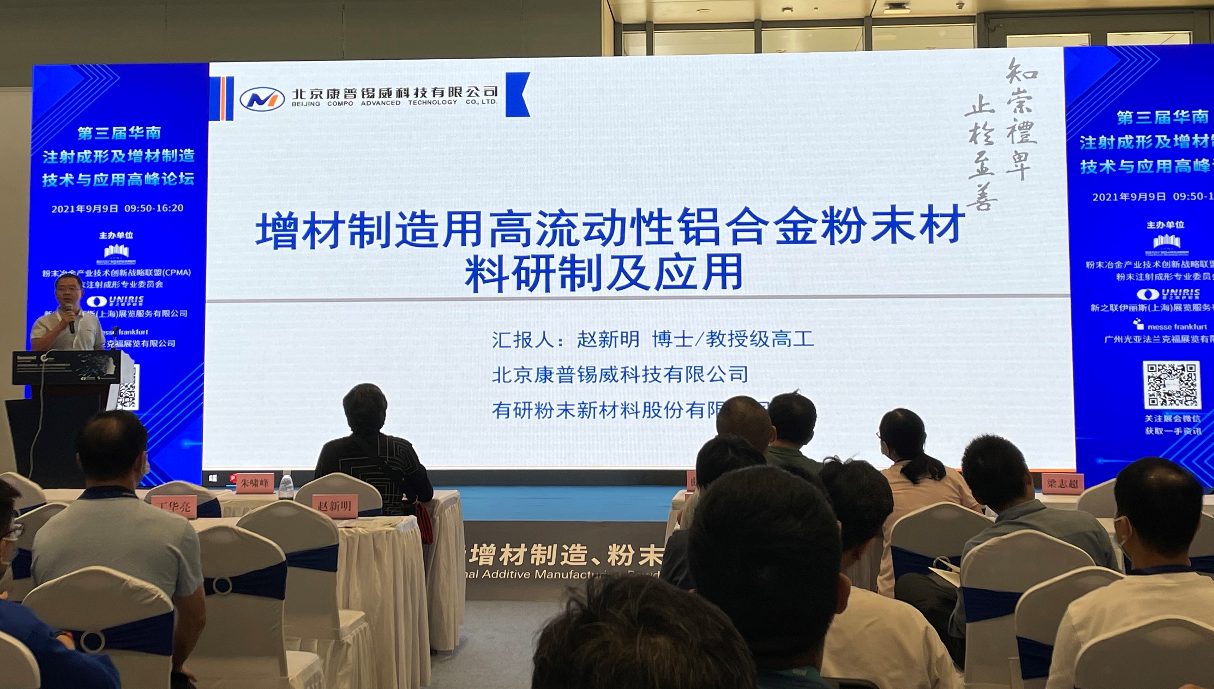 展會同期舉辦了多場高品質(zhì)學(xué)術(shù)論壇,趙新明博士代表康普錫威公司就“增材制造用高流動性鋁合金粉末材料研制及應(yīng)用”進行了專題報告,對3D打印粉體材料產(chǎn)品進行了介紹和推廣。