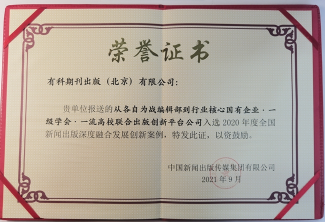 有科出版“從各自為戰(zhàn)編輯部到行業(yè)核心國有企業(yè)·一級(jí)學(xué)會(huì)·一流高校聯(lián)合出版創(chuàng)新平臺(tái)公司”入選中宣部中國新聞出版?zhèn)髅郊瘓F(tuán)組織的2020年度全國新聞出版深度融合發(fā)展創(chuàng)新案例。