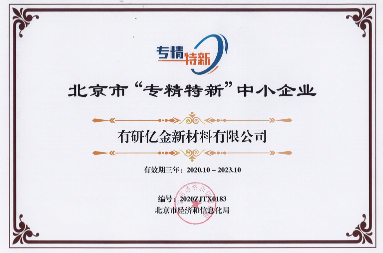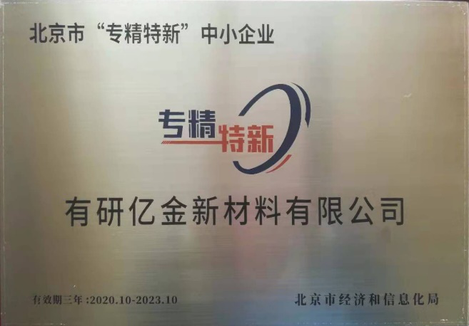 經(jīng)北京市經(jīng)濟(jì)和信息化局評(píng)審,有研億金榮獲2020-2023北京市“專精特新”中小企業(yè)榮譽(yù)稱號(hào)。